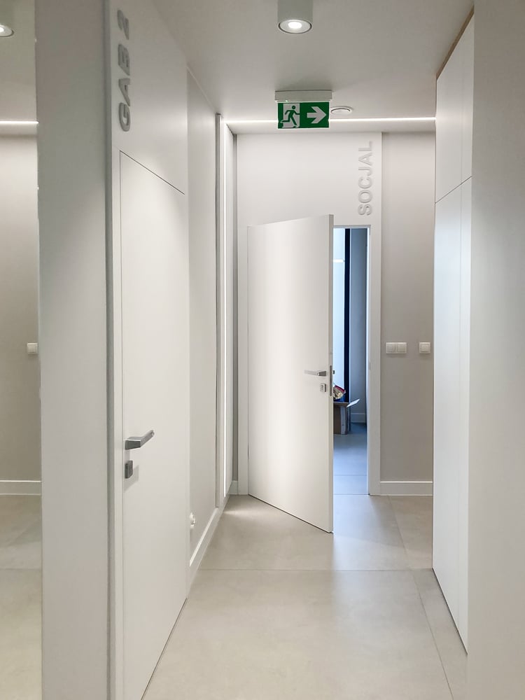 Adaptacja budynku magazynowego na klinikę medycyny estetycznej. Zaprojektowaliśmy układ funkcjonalny, czytelne prowadzenie pacjentów od wejścia po gabinety oraz spójne oznakowanie i recepcję.