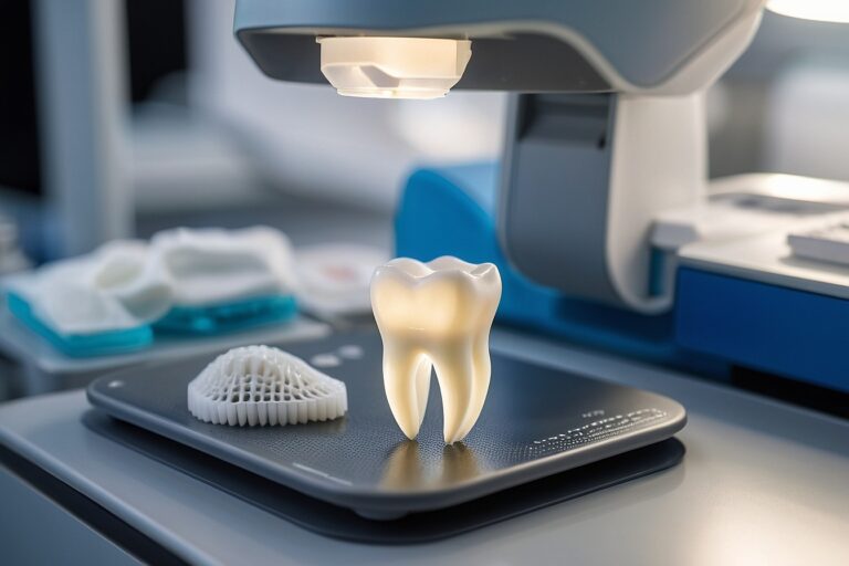 Druk 3D pozwala na szybką produkcję koron, mostów oraz innych elementów protetycznych bezpośrednio w gabinecie, skracając czas oczekiwania dla pacjentów.