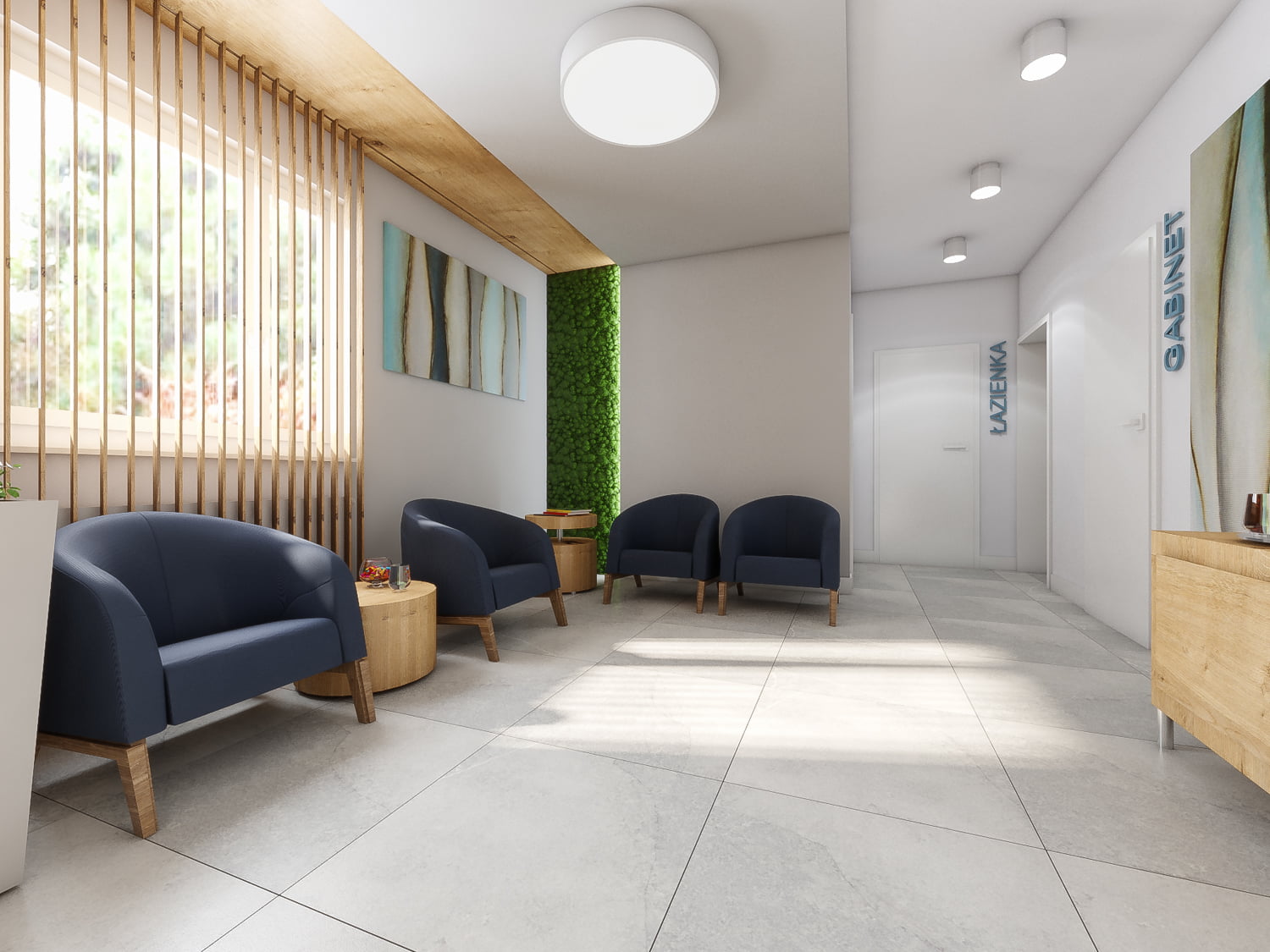 Wybór odpowiedniej aranżacji i kolorystyki w poczekalni ma kluczowe znaczenie dla stworzenia atmosfery, która może łagodzić stres i niepokój pacjentów. Badania wykazują, że kolory mają bezpośredni wpływ na nasze emocje i samopoczucie. Na przykład, odcienie niebieskiego i zieleni są kojarzone z uspokojeniem, podczas gdy ciepłe barwy , materiały nawiązujące do natury ( drewno, zieleń ) mogą wprowadzać poczucie komfortu.